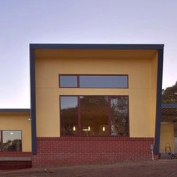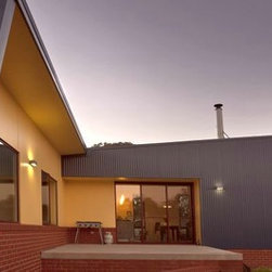 The colourful interior and clever detailing offset the simplicity of form and materials, primarily Colorbond, brick, Cemintel sheeting, concrete flooring and aluminium frames for glazing.