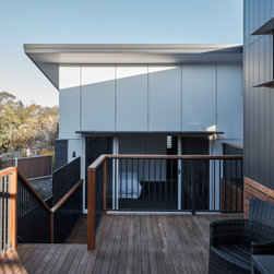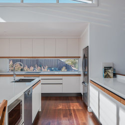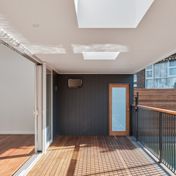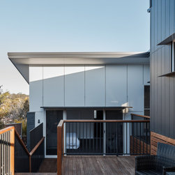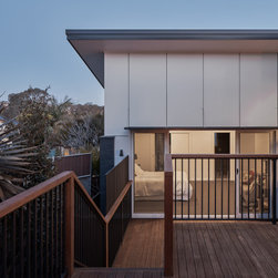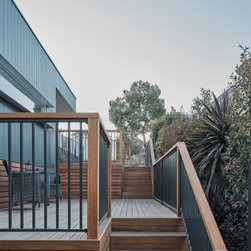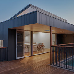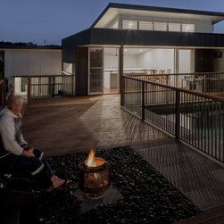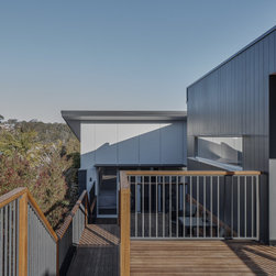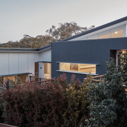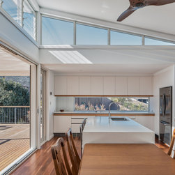 The solution was found in an extension that stepped up the hill containing the new living, dining and kitchen oriented to the path of the sun and relegated the old poorly oriented building fabric to sleeping areas.