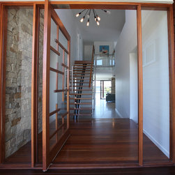 This resident epitomises the waterfront lifestyle. From the moment you enter the Japanese influenced pivot front door you can see why! Generous 901sqm with a 25m waterfront frontage this home provides an east facing outlook providing a lovely view over the water and the green corridor to the north. Every aspect of this home has been designed to compliment the relationship between water, occupant and space and incorporates the most opulent finishes and every conceivable modern luxury. Utilising soaring voids , floor to ceiling glass and thoughtful design, this house simply puts you at ease the moment you walk in.