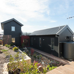 Living areas connect to four carefully considered outdoor spaces: a thriving veggie patch near the front door, an enclosed courtyard where cats can roam, a rooftop terrace with a view, and thanks to the creativity of the owners, a wonderfully landscaped and contemplative rear garden.