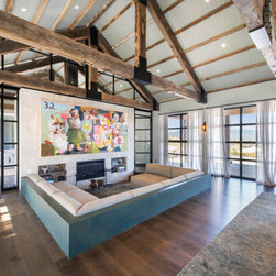 A dream location and spectacular views, Cath's soaring ceiling, exposed beams and expansive windows beautifully connect the outdoors with the interior design of the Cath home by Hedger Constructions.