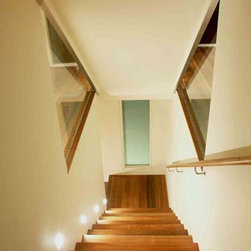 The existing rendered stone façade was carefully renovated to its former splendour and conceals the first open-plan apartment with its winding staircases and private deck.