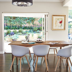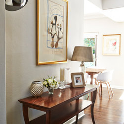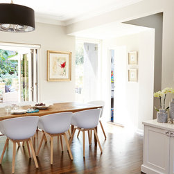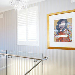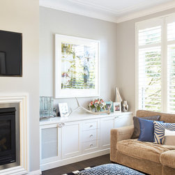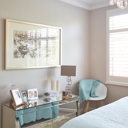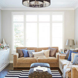Our clients had worked with us on their previous property so when they purchased their new family home we got the call to assist them in transforming this home to a chic family home. As we had worked with these clients before we had a real clear understanding of their style. Having lived in New York this couple loved mixing classic and contemporary styles. A central fireplace with detailed joinery was added to the main living room to provide a focal point to this open plan room. The neutral colour scheme worked perfectly with their extensive art collection and Black accents pieces and a large scale graphic floor rug added their personality to this home. This home was featured in Home Beautiful Magazine.