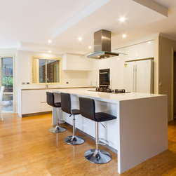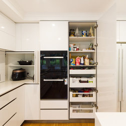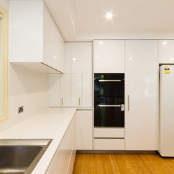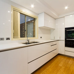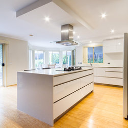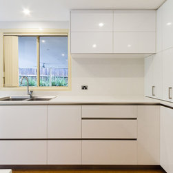 A contemporary kitchen; sleek and modern; simple and practical in every way.