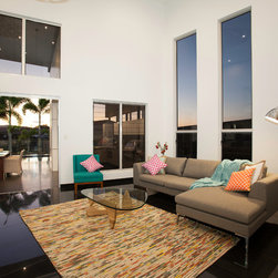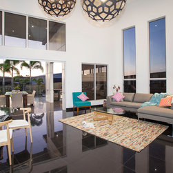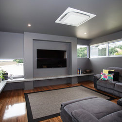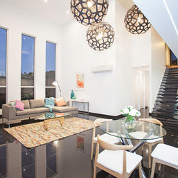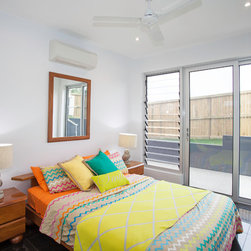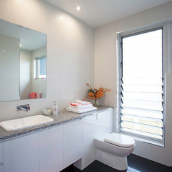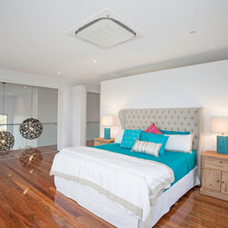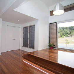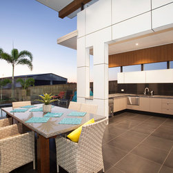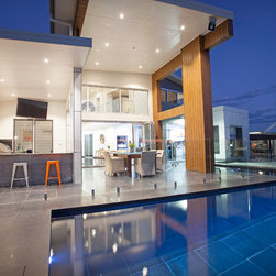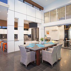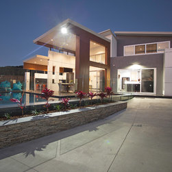 This impressive home is located on sloping site with views to Habana. Design features include highly glazed facades, 2 storey voided living spaces and an impressive outdoor entertainment area. The master suite is connected via walkway that looks over the living space.