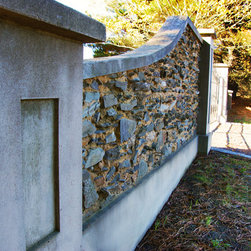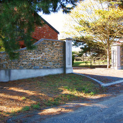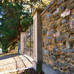 The natural stone walls blend nicely with the reclaimed brick house and front porch to truly set the tone of elegance and style.