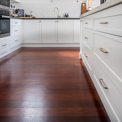Floors are recycled Jarrah on joists in semi gloss finish (115x21) by Access Timber Flooring.