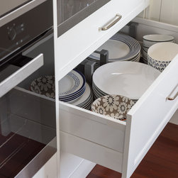 Doors are shaker in white satin lacquer.