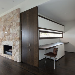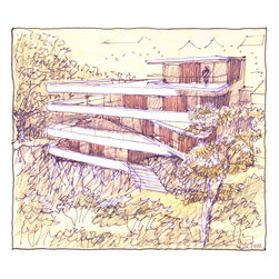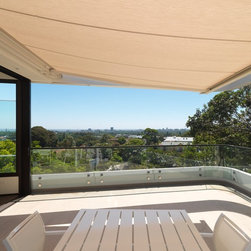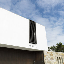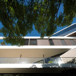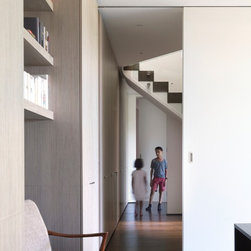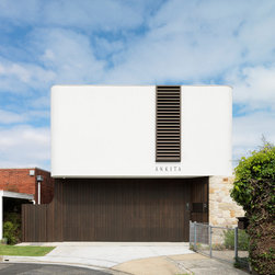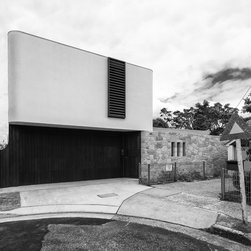 The western elevation of the house has unique city and Blue Mountains views over the greenery of the gully and adjoining parks. The balcony projections, louvres and shutters moderate the heat of the western orientation. All habitable rooms have an external sun protection. Vertical living, shading devices and good use of materials have delivered an air-conditioning free house.