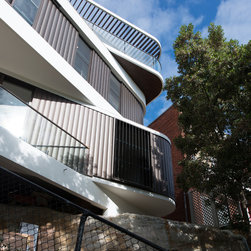 Perched on the top of a rock escarpment in Sydney’s Eastern Suburbs, overlooking Queens Park and Centennial Park, the cliff top house is an example of vertical living. Four storeys high, only to above the street and built to the front boundary, it was easily approved by Waverley Council because it was consistent with the unique topography, and Luigi Rosselli Architects demonstrated the positive impact to the public and neighbours.