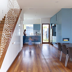 As with all of our designs, the starting point for this new residence in Clifton Hill was to consider the long and short term needs of the owners; in this case a young, growing family who have adopted this neighbourhood for their new home. Our design approach was to compose a series of spatial relationships within the house itself, between the inside and outdoor living spaces as well as the residence and the street.