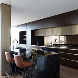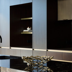 The complete remodel of the kitchen area spanning eight meters of gorgeous cabinetry adds a layer of sophistication to marring the contemporary &subtle traditional approach to the home.