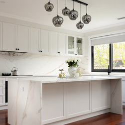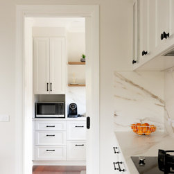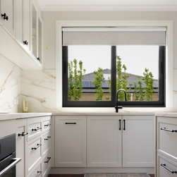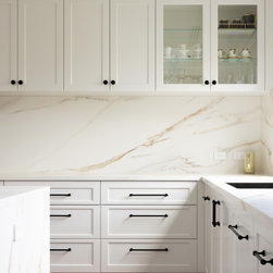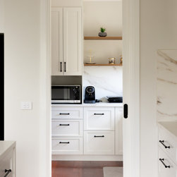 A study in quiet elegance, this kitchen is defined by a soft, tonal palette and meticulous material continuity. Shaker-style cabinetry in a warm off-white introduces a sense of heritage, while its pared-back profiling keeps the aesthetic firmly contemporary. The absence of ornate detailing allows...