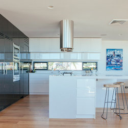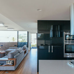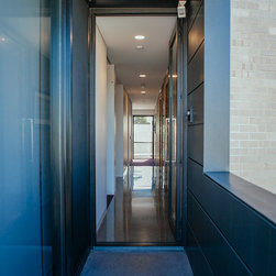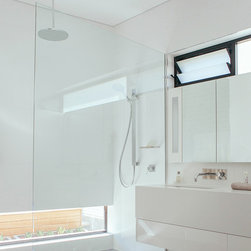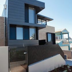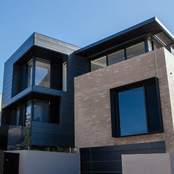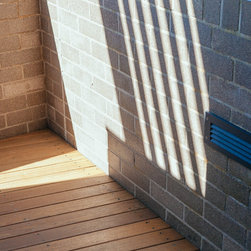The Hubert Coane Residence is located at the convergence of two lot alignments, creating a wedge shaped site. The design responds to this by providing a solid masonry plinth to one boundary alignment and a linear zinc linear form to the other. The masonry plinth is designed to create a sense of solidity and continues into the main circulation corridor of the house. The linear zinc form has large cut aways that allow control of light and ventilation.