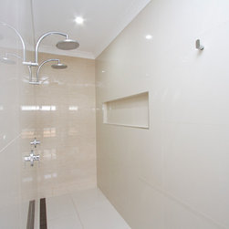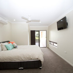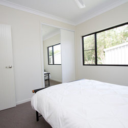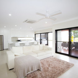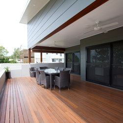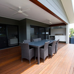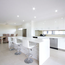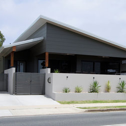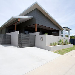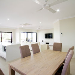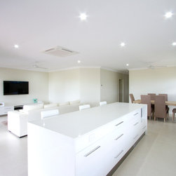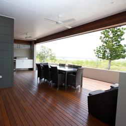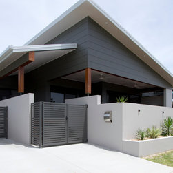 A relaxed home, light and airy, it takes in the natural beauty of the coastal location and the surrounding views. This design has a real focus on living and entertaining. The design is simple and functional with the incorporation of multifunctional spaces to reduce the overall footprint on a restricted site. The deck is the access point for the residence as well as the entertainment area and retreat for the Master bedroom. Two large stacking sliding doors give you access directly to the living, kitchen and dining area. The rear kitchen bench flows through the glass door to the outdoor kitchen.