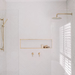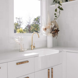 Living in a white-on-white dream, the addition of brass tapware and accessories are an outstanding touch of luxury to Coastal Barn Dream's gorgeous home.