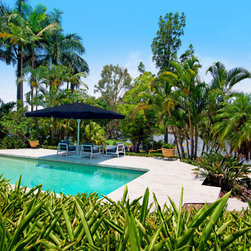Tropical gardens around pool