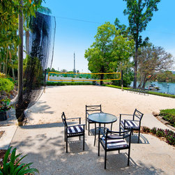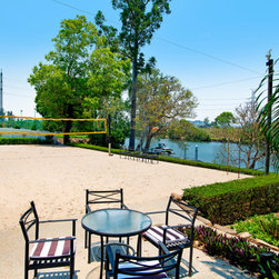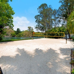 Pool overlooking Beach Volley ball court on waterfront.