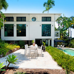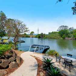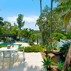 Outdoor entertaining overlooking pool and waterfront