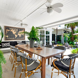 Outdoor entertaining area overlooking pool.
