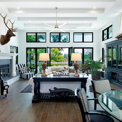 family room with large picture windows