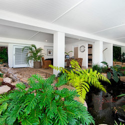 Patio over looking waterfalls and fish ponds