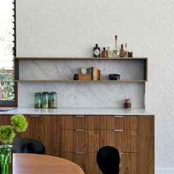 Heritage pressed tin is re-interpreted as a cladding material to marry the new and old elements of the house. Dark stone floors contracts the timber floors to delineate the connection from old to new. A flexible third bedroom is included in the design.
