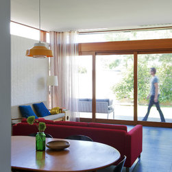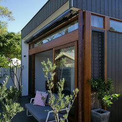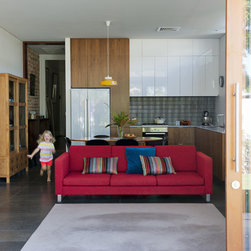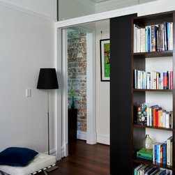 A modest semi-detached workers cottage is converted into a flexible and modern home for a small growing urban family. The Western facing living spaces have been opened up to the small terrace garden and protected from afternoon sun via an operable external awning and sunscreen which also creates a flexible covered external area.