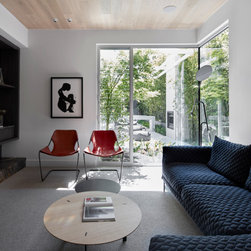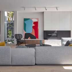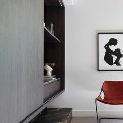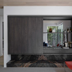 Colours and materials are matched inside and out, naturally blending the two and creating a seamless space. The entryway functions as a stylish drop zone for the entire family, forming the foundations of an impeccably organised home. Timber battens hide not one, but two secret doors. The sitting room, with its timber-clad ceiling, concealed entertainment system and built-in bar by TKDC, is the perfect setting for lazy Sundays or dinner party overflow.