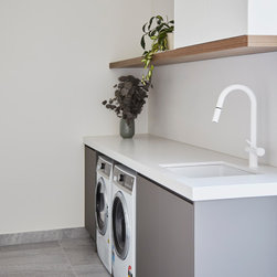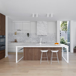 Designed by Webster Architecture and built by Mazzei Homes, the Collis home boasts a striking white façade that gives the house a clean, sophisticated, and timeless quality. As you enter, every cabinetry detail is carefully considered, having been cleverly appointed by The Kitchen Design Centre (TKDC).