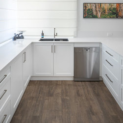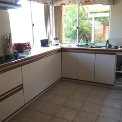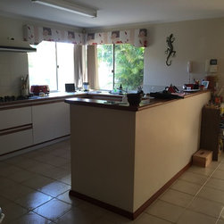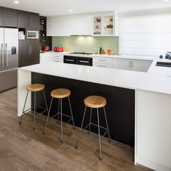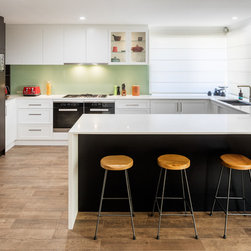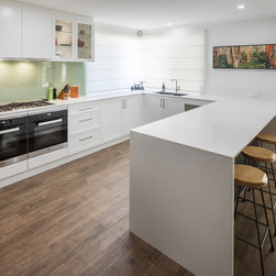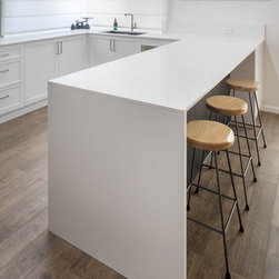 Benches: Caesarstone Organic White 20mm with shadow line and a 40mm waterfall end.
