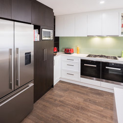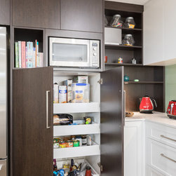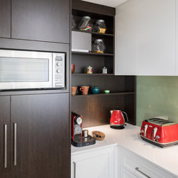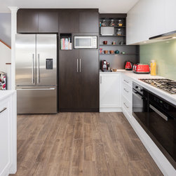 Cabinets: combination of flat panels, routed panels and Formica Straight Grain Wenge.