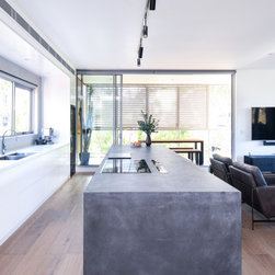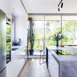 We accomplished this transformation by reconfiguring the footprint of the room and moving the kitchen to the back wall. It was a challenging renovation as due to being a unit we had to chase all the services through the concrete slab.
