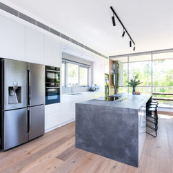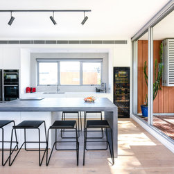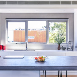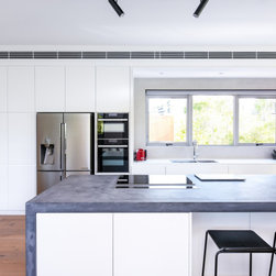 Concrete Island Benchtop | Concrete Bathroom | Built-In Wine Fridge