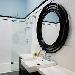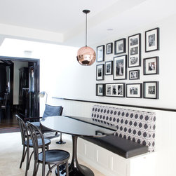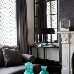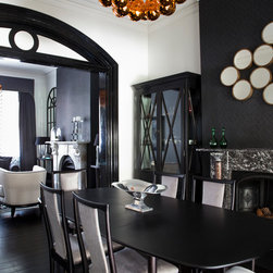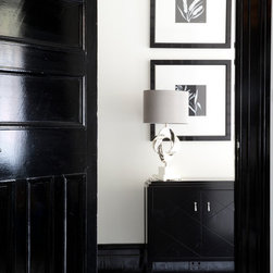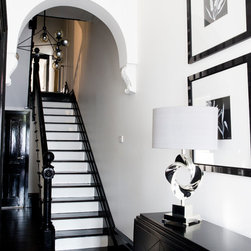 A Victorian Terrace in Sydney's inner city was transformed into a stylish contemporary home for this young family. Victoria Waters Design worked closely with these clients and project managed all elements of the project from design to completion. A monochromatic colour palette provides a contemporary twist on a traditional home. The original floorboards were stained black to provide a dramatic feel to this home. Large scale graphic rugs were custom designed for this project to provide a statement in the entrance and main living areas. The elegant furnishings contrast with the contemporary lighting and styling to provide the perfect balance of styles. This statement home was featured in House and Garden Magazine.