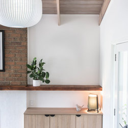 Some key features were retained and highlighted such as the existing expansive red cedar lined ceilings treated to a lime wash to tone down the intensity of the red but retained the beaty of the timber grain.