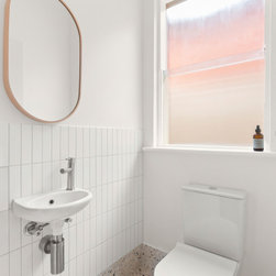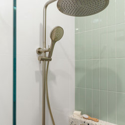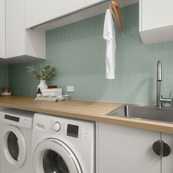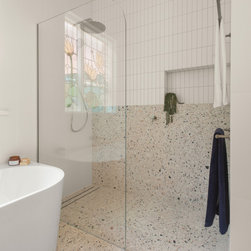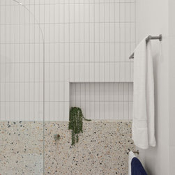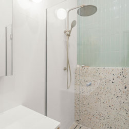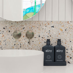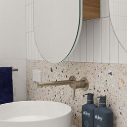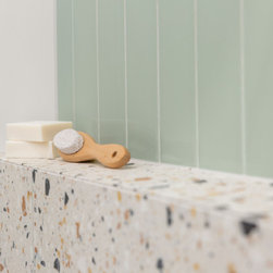Tiles: Italia Ceramics Pistachio Acuarella tiles and Terrazzo Ceramic tiles.