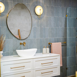 Contemporary bathroom with blue wall tiles