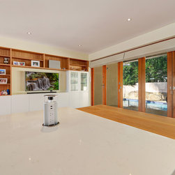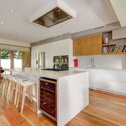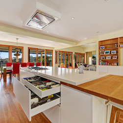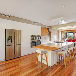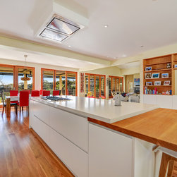 Our design team listened to our clients and created an open plan space with a huge galley-style kitchen with adjoining dining and living spaces, with all areas having views to the water.