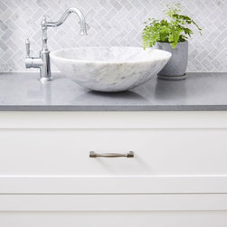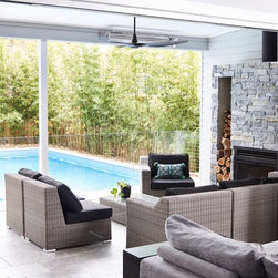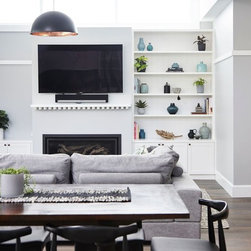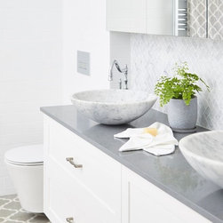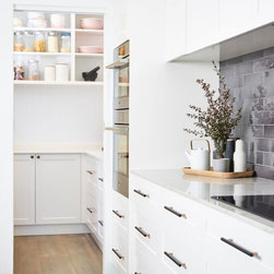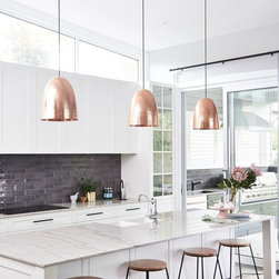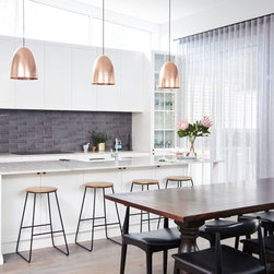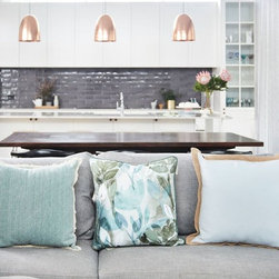 The brief was to expand the kitchen and living areas. The back of the house was extended to create a very open plan living, dining and butler's pantry to accommodate a busy young family. The original small kitchen became the master ensuite. Our clients were keen to keep the extension fairly classic in keeping with the heritage of the home. Shaker style cabinetry and classic English tapware was specified, the copper egg pendants over the island and sheer ripple fold curtains bring a relaxed contemporary feel to the home.