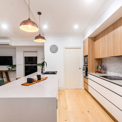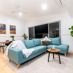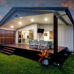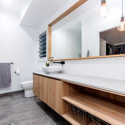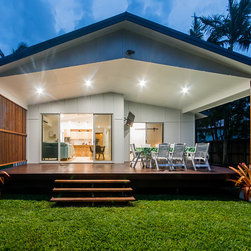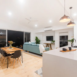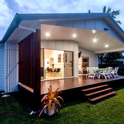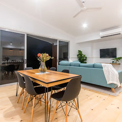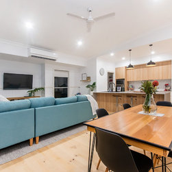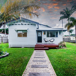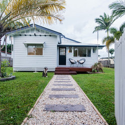 This Miner's Cottage Re-design is situated in West Mackay. A Quaint Little Old House that has been transformed into a spacious family home and remains graced with it’s original tongue and groove internal walls, 2785mm high ceilings, external weatherboards, and gable ends. The designers have blended the old Queensland charm into the new extension by adding chair rails and tongue and groove as a feature. The home has now evolved into a functional open plan living space boasting new kitchen, living and dining areas which open out onto a large timber deck. The renovation is in keeping with the original street appeal and doesn’t appear as an extension.