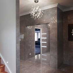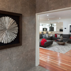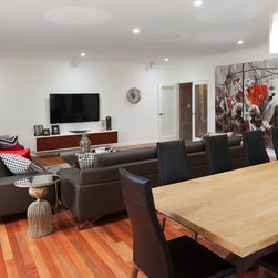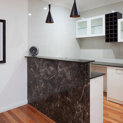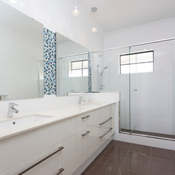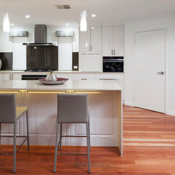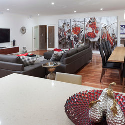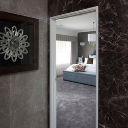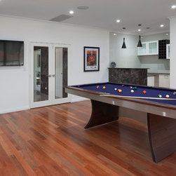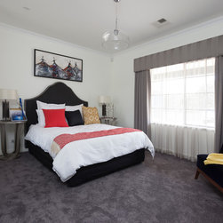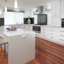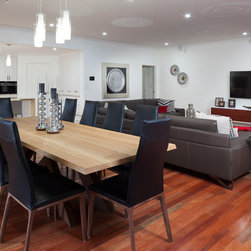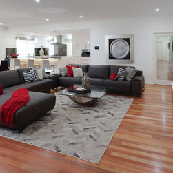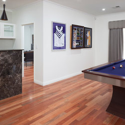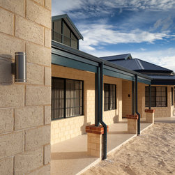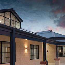 The home boasts a double height clay brick exterior in Florentine Limestone and projecting solid brick pier caps in Burnished Red (both by Midland Brick), with a BlueScope Colorbond® steel roof in a classic Deep Ocean colour. Aluminium joinery complimented by single-sided glazing bars gives authenticity to the heritage façade, with a decorative combination of exposed and honed aggregate included to the driveways, outdoor living areas and pool surround. The result is a beautiful, rambling homestead ideally suited to modern family living.