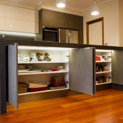This family home needed to make the most of a storage cupboard that faced into the room behind the kitchen. By making this flip, this space was able to be turned into a pantry giving the kitchen more practical working space. The new kitchen is now a large, open, modern space with clean lines and sleek finishes.