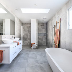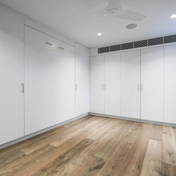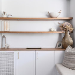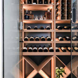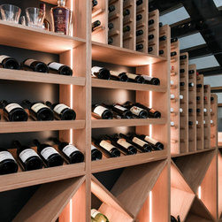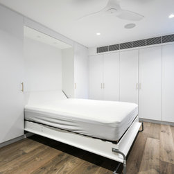 Custom Veneer Wine Cellar | Floating Shelves | Modern Bathroom | Pull-down Bed