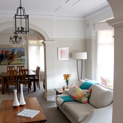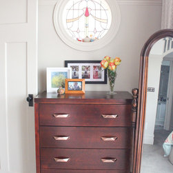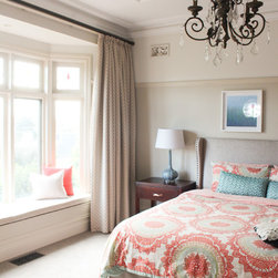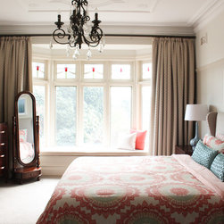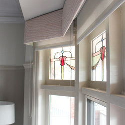 This client had built the most beautiful, quality home with many period features. The tricky part was furnishing it in a sympathetic manner, but appropriate for modern family life. GDP Interior Design assisted with bespoke pelmets and suitable blinds to complement - not compete - with stained glass detail on bay windows. This lead on to further supply customised bedhead, and full bedroom suite, designed by Giulianna, and made by local Melbourne manufacturers.