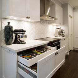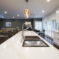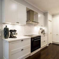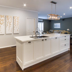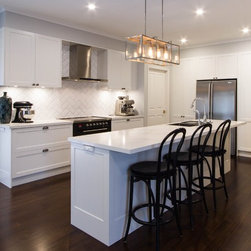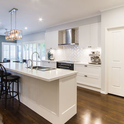 A stunning kitchen, designed by Michael Simpson, that fits perfectly into the Modern/Traditional trend. As you can see, this new kitchen is perfectly set up to suit a family who cooks and entertains. The crispy white finish is classic and when teamed with the dark timber floors, this kitchen really couldn’t be more elegant.