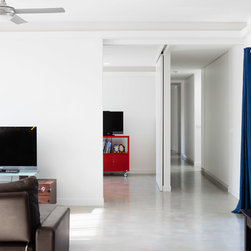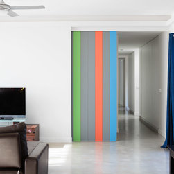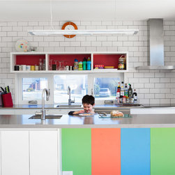 The flexibility for a growing family also formed elements of the design. The boy’s play room is open to the main living area for while they are young, with the ability to close its large colourful sliding door and function as a second living room when required.