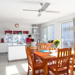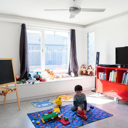 Design simplicity with sun-filled living areas and high windows providing natural light to the kid’s bedrooms and hallway are some of the project architect’s favourite features. This home captures a focus on functionality, comfort, liveability and the family’s sense of fun.