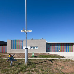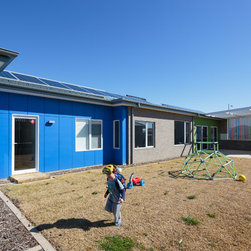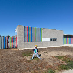 The client’s key aspirations were to keep it simple and within budget, while still expressing their vision for a vibrant family home. From the street, bursts of colour in the timber battens and garage door accentuate the playful nature of the family with bright blue and green wall cladding facing out to the private outdoor play areas.