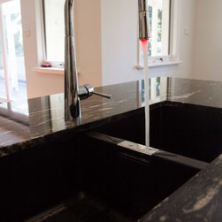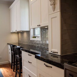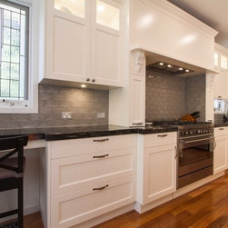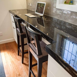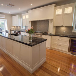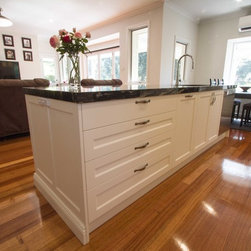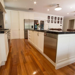 Our clients in Eaglemont purchased this house from a family that ran a business from home. They had build an office next to the kitchen to suit their needs however, when David and Adele moved in with their family, this home office was not needed. What was needed was a large kitchen to suit their growing family and a new heart for this home. Our very clever designer, Corey Johnson, designed a new kitchen that completely opened the space up, gave them more storage and turned the old home office into a meals area and computer nook. Very innovative!